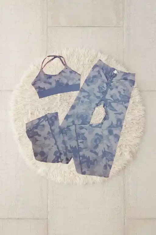 Conjunto deportivo de 2 piezas color azul, estampado Talla XS,S