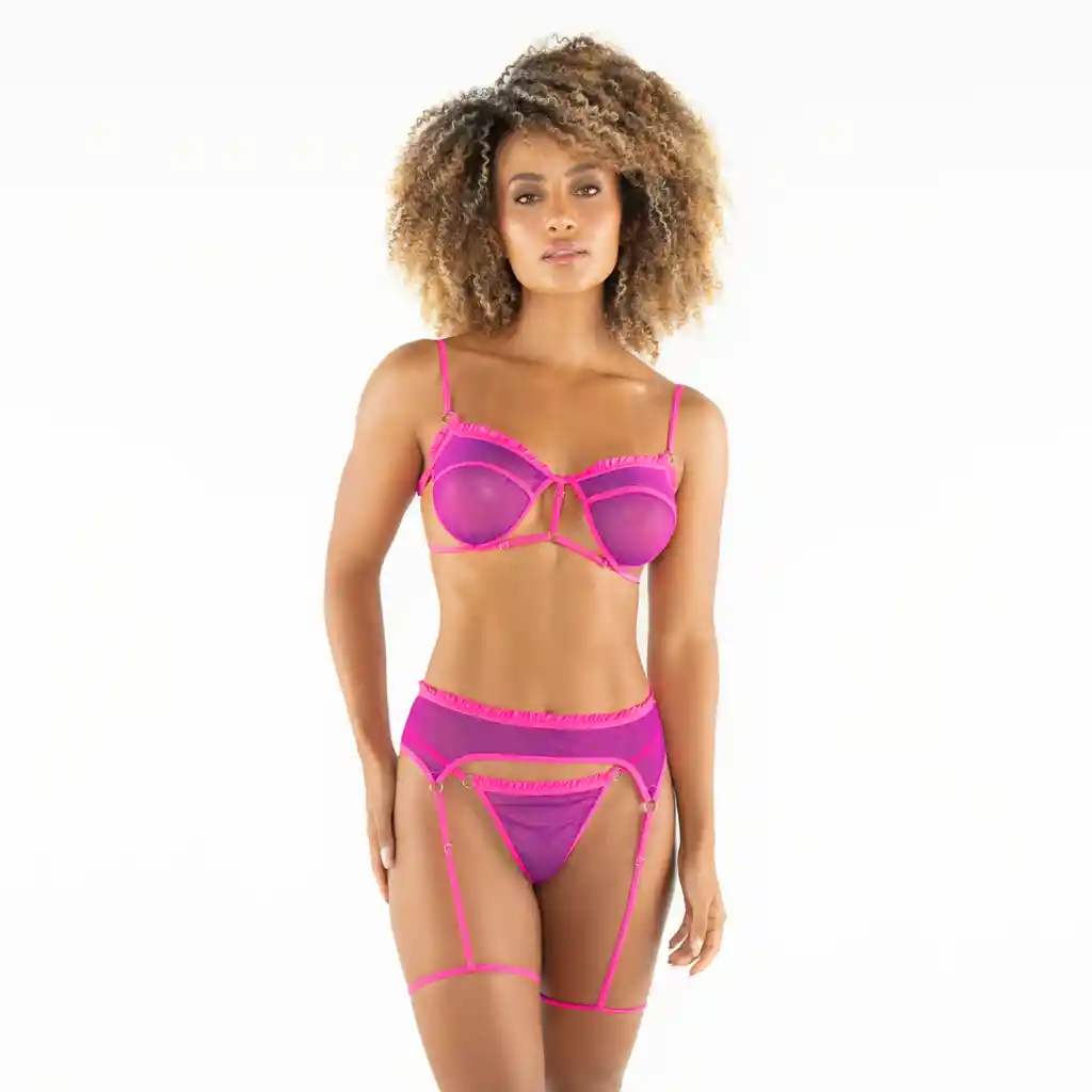 Descubre la sensualidad en su máxima expresión con nuestro irresistible conjunto de lencería erótica en malla, diseñado para deslumbrar en cada uno de tus shows. Este conjunto ha sido creado para resaltar tu belleza y cautivar a tu audiencia desde el primer instante. Los vibrantes colores de la malla se adaptan a cualquier tono de piel, asegurando que cada movimiento y ángulo frente a la cámara brille con estilo y sensualidad. La malla ligera acaricia tu cuerpo con suavidad, proporcionando comodidad sin perder un ápice de provocación. Lo que hace especial a este set es su liguero independiente, que añade un toque de seducción extra, perfecto para jugar con las expectativas y mantener a tu audiencia intrigada. El liguero, además de ser funcional, se convierte en un accesorio clave que eleva la sensualidad del conjunto, creando una silueta poderosa y atractiva. Sencillo, cómodo y provocador, este conjunto está diseñado para quienes buscan destacar con elegancia y un toque atrevido. Ya sea que lo uses para un momento íntimo o como la pieza principal de un show de webcam, este set garantiza que serás el centro de atención, irradiando confianza y glamour en cada paso.