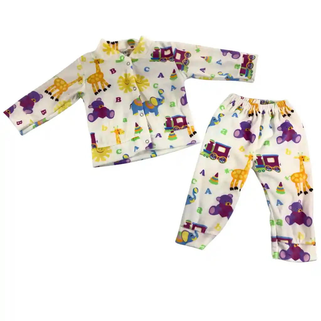 Hermoso conjunto pijama para bebé talla 6–12 meses, diseñado para brindar comodidad, abrigo y libertad de movimiento. Elaborado en tela suave y agradable al tacto, ideal para el descanso y uso diario. Su color blanco con divertidos estampados de animales, letras y figuras infantiles lo hace alegre y encantador. Perfecto para dormir, estar en casa o como un lindo regalo. El producto incluye: 1 saco manga larga con botones frontales 1 pantalón con pretina elástica Tela suave y cómoda Estampado infantil multicolor Conjunto de dos piezas Ideal para clima fresco