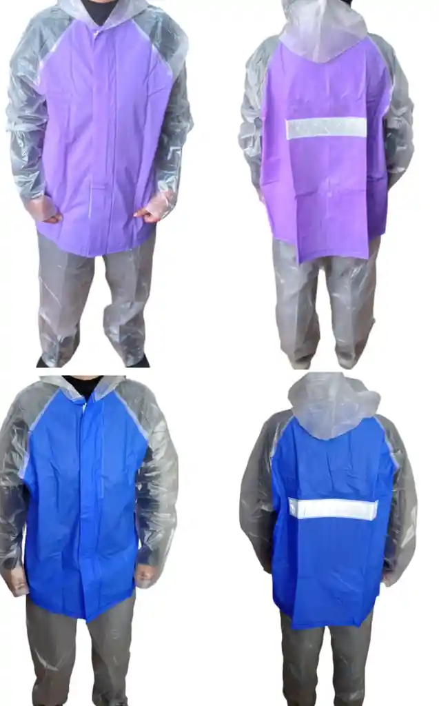 Conjunto (chaqueta y pantalón) 100 % impermeable Totalmente electro sellado Elaborado en Siliconado calibre 4 Reflectivo en espalda, cierre con cremallera y Velcro. TALLAS DISPONIBLES: M, L, XL