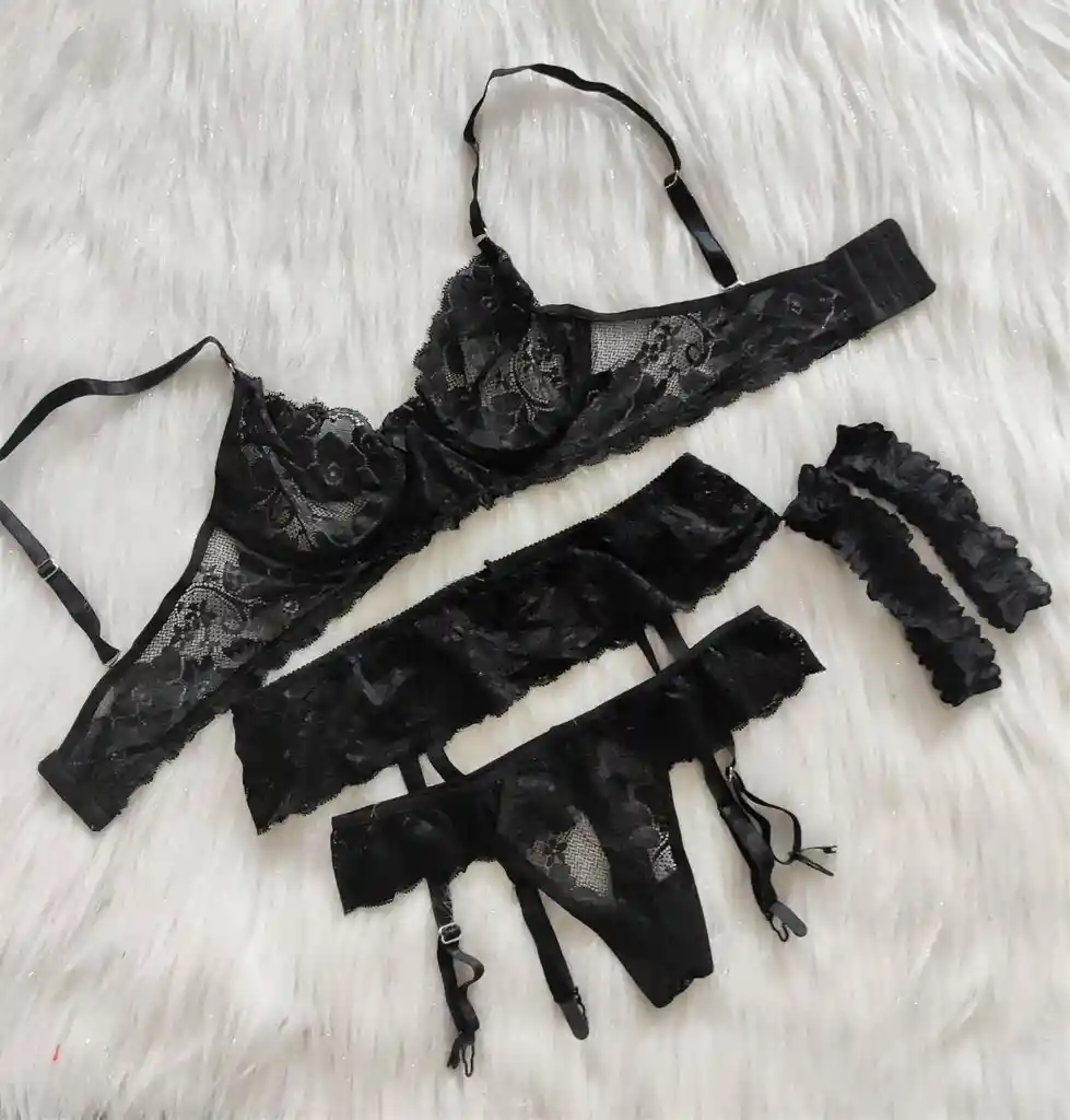Elaborada en encaje, tiene varilla, broche para ajustarse en la espalda.