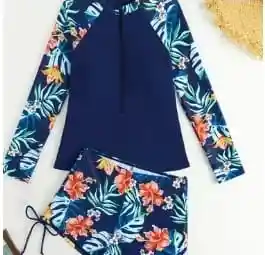 Conjunto de Bañador Tankini Chic para Mujer - Top Sexy de Manga Larga con Cierre y Estampado de Flores & Shorts de Cintura Alta con Cordón, Tejido Elástico. Detalles del producto. Detalles: Ninguno Estampado: Impresión aleatoria Escarpado: No Tela: Elasticidad alta Instrucciones de cuidado: Lavar a mano, no lavar en seco Material: Poliéster Tipo de impresión: Estampado aleatorio Composición: 82% Poliéster, 18% Elastano Método de tejido: Tela tejida Textura de la tela 1 Componente: 82% Poliéster, 18% Elastano Textura de la tela 2 Componentes: 80% Nailon, 20% Elastano