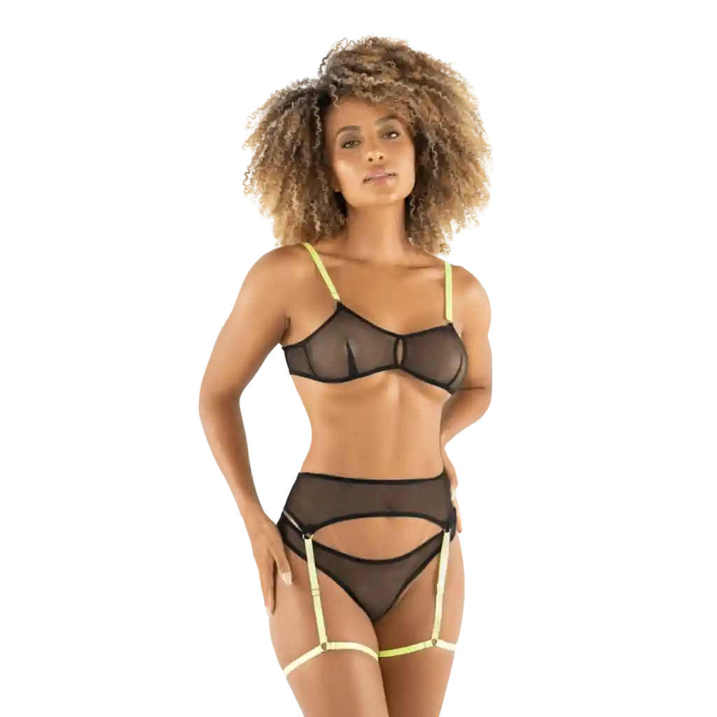 Talla: ML Conjunto Neon Negro - Lencería Sensual para Mujer Descubre el Conjunto Neon Negro Lerot, un atrevido conjunto en malla negra con acentos neón que realza tu sensualidad. Este conjunto de lencería incluye un top, panty y liguero, creando un estilo irresistible para esos momentos especiales. ¿Por qué amarás este conjunto? • Malla con transparencias que seducen - Acentos neón que resaltan tu estilo - Perfecto para ocasiones especiales - Disponible en talla S-M Detalles del producto: • Material: Mallatex - Contenido: Panty, top, liguero - Marca: Lerot - Garantía: 30 días Guía de cuidados: Para mantener tu lencería sensual en perfecto estado: - Lavar a mano con agua fría - Lavar por separado o con prendas delicadas - No usar desinfectantes ni plancha - Secar a la sombra ¡Importante! Este producto no está sujeto a cambios. Solo se acepta garantía por defectos de fabricación.