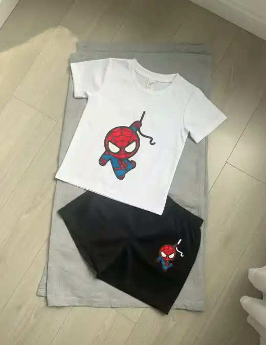 Conjunto Niño Spiderman Camiseta Blanca Y Short Negro 3-4 Años
