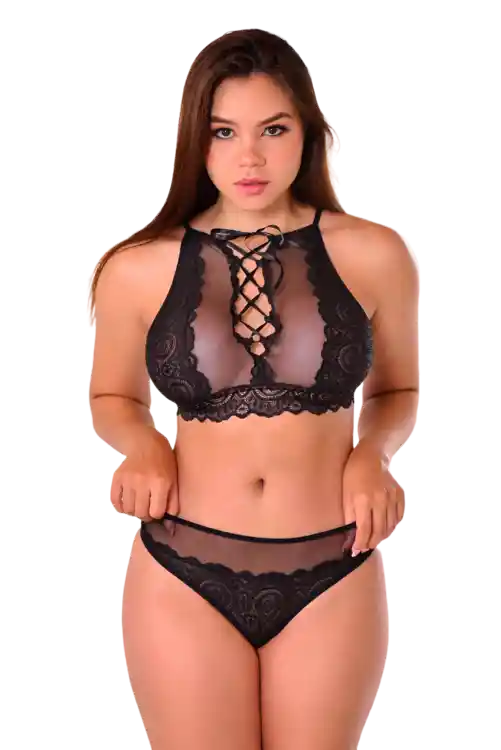 DESCRIPCION. SET: 2 piezas ( 1 panty y 1 bralette) TALLA: Talla unica graduable COLOR: Negro y Rojo COMPOSICION DE TELAS: Mallatex (poliéster 94% y spandex 6%), Encaje (91% Nilón y 9%expandes) herrajes metálicos y cargadera (algodón y nailon)