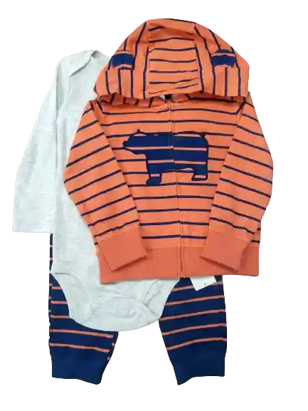 Disponible en talla 18m, 24m. Hermoso Conjunto 3 piezas para bebés Marca Carter's. Incluye Buzo con capota, un Body manga larga y un Pantalón fabricados en materiales suaves y delicados con la piel de tu bebé, para mantenerlo cómodo y fresco durante todo el día. Luego de realizar tu compra déjanos saber la talla , por el chat o por medio de indicaciones especiales de compra.