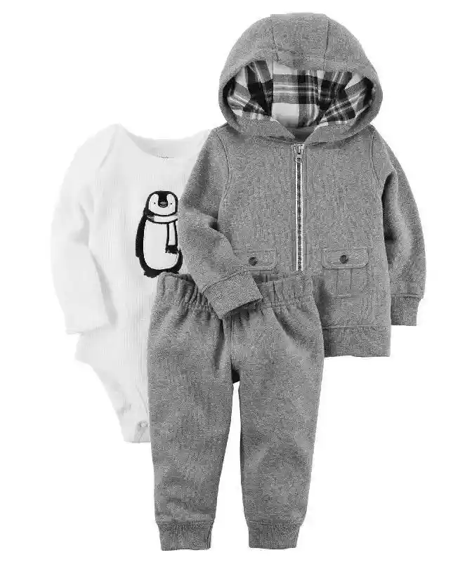 Disponible en talla 18m, 24m. Hermoso Conjunto 3 piezas para bebés Marca Carter's. Incluye Buzo con capota, un Body manga larga y un Pantalón fabricados en materiales suaves y delicados con la piel de tu bebé, para mantenerlo cómodo y fresco durante todo el día. Luego de realizar tu compra déjanos saber la talla , por el chat o por medio de indicaciones especiales de compra.