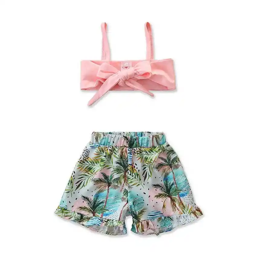 conjunto playero con top rosado para niña de 4 Años