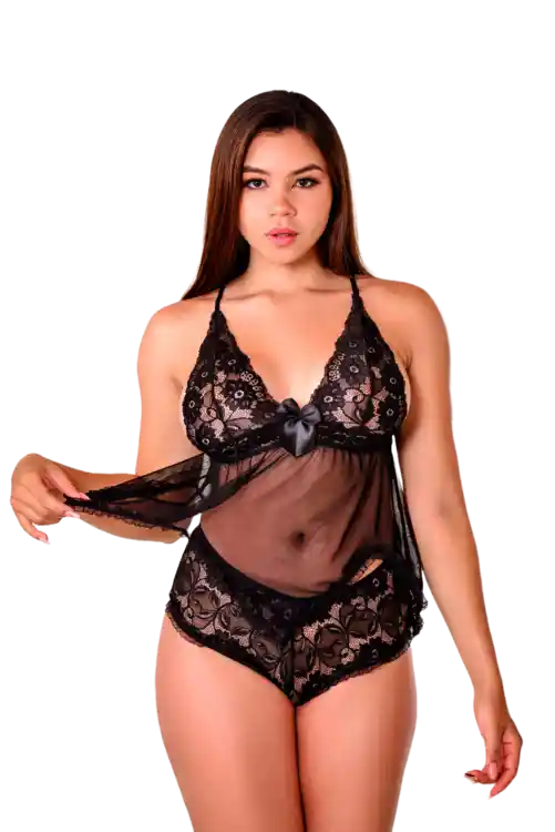 DESCRIPCION. SET: 2 piezas ( 1 blusa y 1 cachetero) TALLA: Talla unica graduable COLOR: Negro y Rojo COMPOSICION DE TELAS: Blonda ( 91% Nylon, 9% expandes), Herrajes metalicos, Mallatex (poliester 94%, spandex 6%) y cargadera (algodon, nailon)