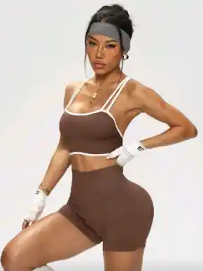 Conjunto deportivo para dama, tejido con tecnologia seamless Talla M Color cafe Top + short