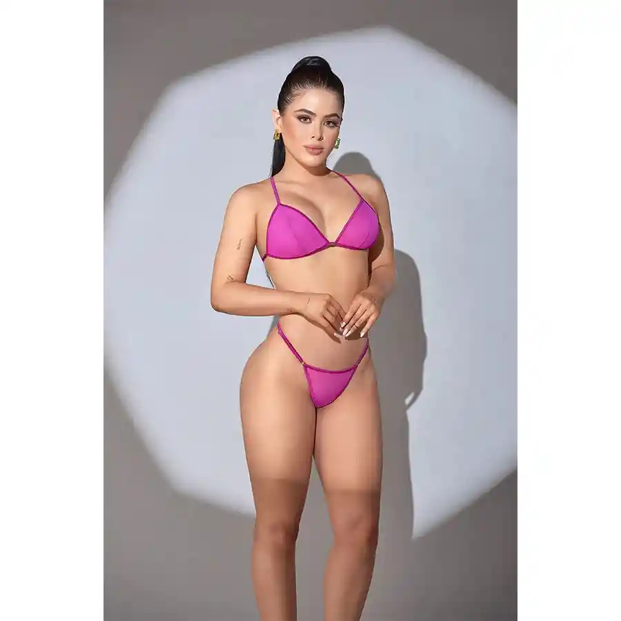 Conjunto casual, de uso diario o para combinar con nuestros accesorios bondage. Color: Magenta Material: Nylon 96% elastane 4% Incluye: Top y tanga