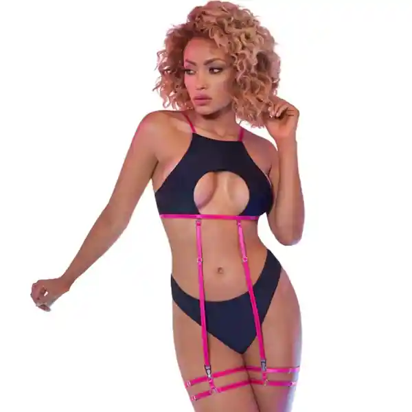 Encantadora, sensual y poderosa. Combínalo con una blusa de transparencias, unos jeans y sal a comerte el mundo. Porque lo sexy también se lleva de día y con estilo. CARACTERÍSTICAS: Material: Nylon 75%, Elastane 25% Talla: Única Color: Negro Incluye: Top, 2 Ligueros, Tanga, Y 2 Ligas CUIDADOS: por su material requiere que sea lavado a mano usando agua fría y secado a la sombra, tenga en cuenta que al ser una prenda delicada no se recomienda el uso de desinfectantes o planchas.