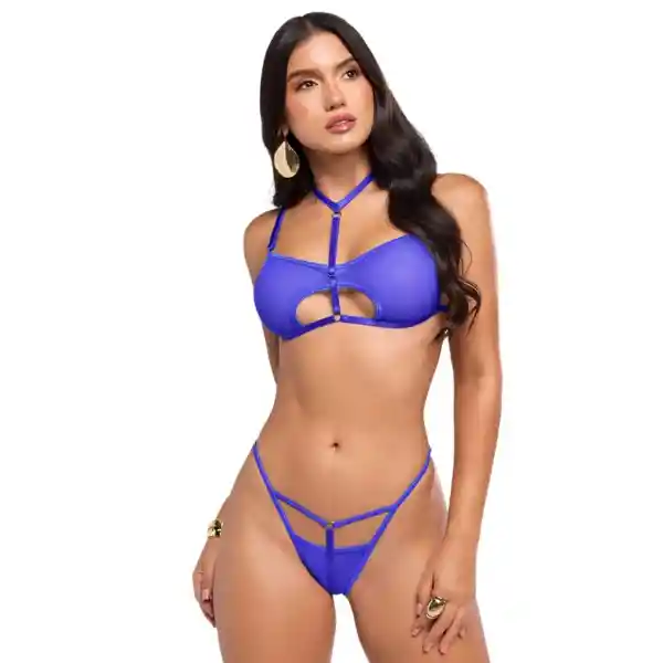 Deslumbra con este conjunto de lencería que es pura fantasía. Su diseño con arneses y aberturas es atrevido y elegante, perfecto para realzar tu belleza. CARACTERÍSTICAS: Material: Nylon 75%, Elastane 25% Color: Azul Incluye: top, hilo CUIDADOS: por su material requiere que sea lavado a mano usando agua fría y secado a la sombra, tenga en cuenta que al ser una prenda delicada no se recomienda el uso de desinfectantes o planchas.