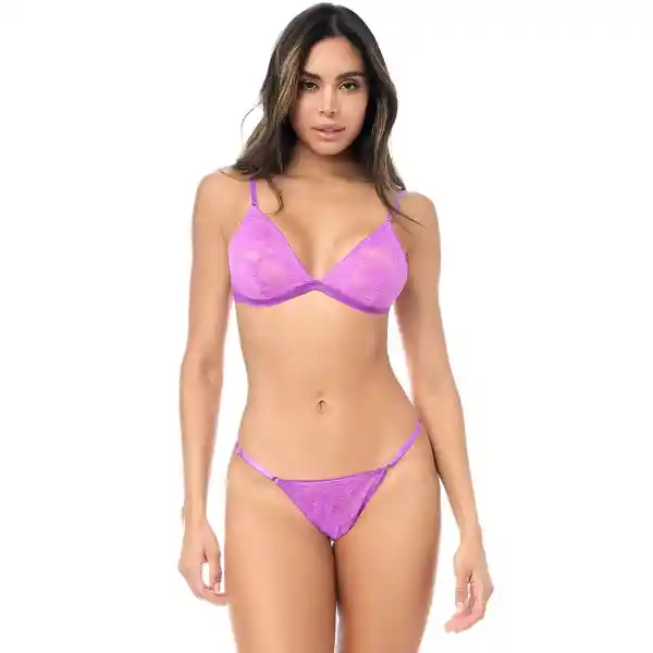 Un conjunto diseñado para resaltar tu figura con el balance perfecto entre comodidad y sensualidad. El top realza el busto con un ajuste favorecedor, mientras que la panty se adapta perfectamente a tus curvas, brindándote libertad y seguridad en cada movimiento. CARACTERÍSTICAS: Material: Nylon 75%, Elastane 25% Color: Lila Incluye: top, hilo CUIDADOS: por su material requiere que sea lavado a mano usando agua fría y secado a la sombra, tenga en cuenta que al ser una prenda delicada no se recomienda el uso de desinfectantes o planchas.