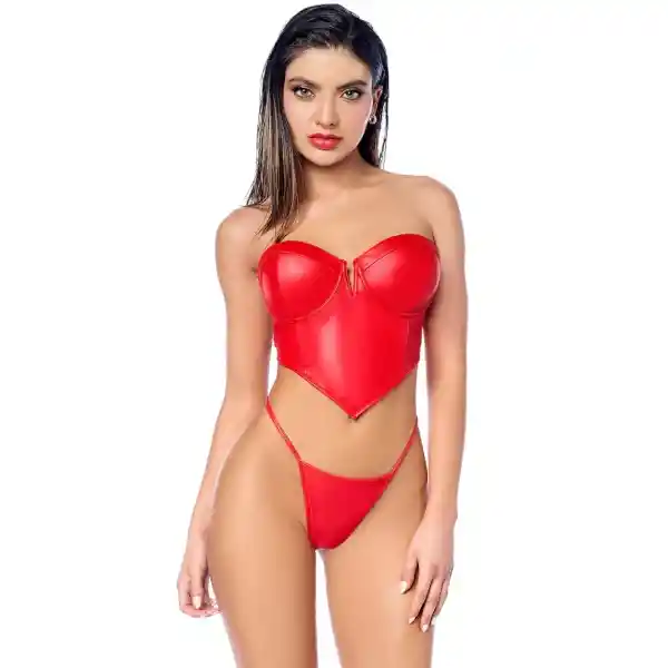 Un set inspirado en la sensualidad y el poder femenino. Su top tipo corset realza y estiliza tu figura, mientras que su panty revela lo justo y deja al descubierto tu lado más atrevido. CARACTERÍSTICAS: Material: Nylon 75%, Elastane 25% Color: Rojo Incluye: top, hilo CUIDADOS: por su material requiere que sea lavado a mano usando agua fría y secado a la sombra, tenga en cuenta que al ser una prenda delicada no se recomienda el uso de desinfectantes o planchas.