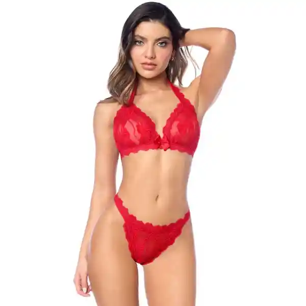 Un set ideal para quienes buscan un equilibrio entre ternura y sensualidad en cada momento. Incluye un bralette en encaje floral semitransparente con amarre al cuello y lazo en la espalda, que aporta un ajuste cómodo y seductor. La panty a juego, resalta la silueta con un toque romántico y provocador. CARACTERÍSTICAS: Material: Nylon 75%, Elastane 25% Color: Rojo Incluye: top, hilo CUIDADOS: por su material requiere que sea lavado a mano usando agua fría y secado a la sombra, tenga en cuenta que al ser una prenda delicada no se recomienda el uso de desinfectantes o planchas.
