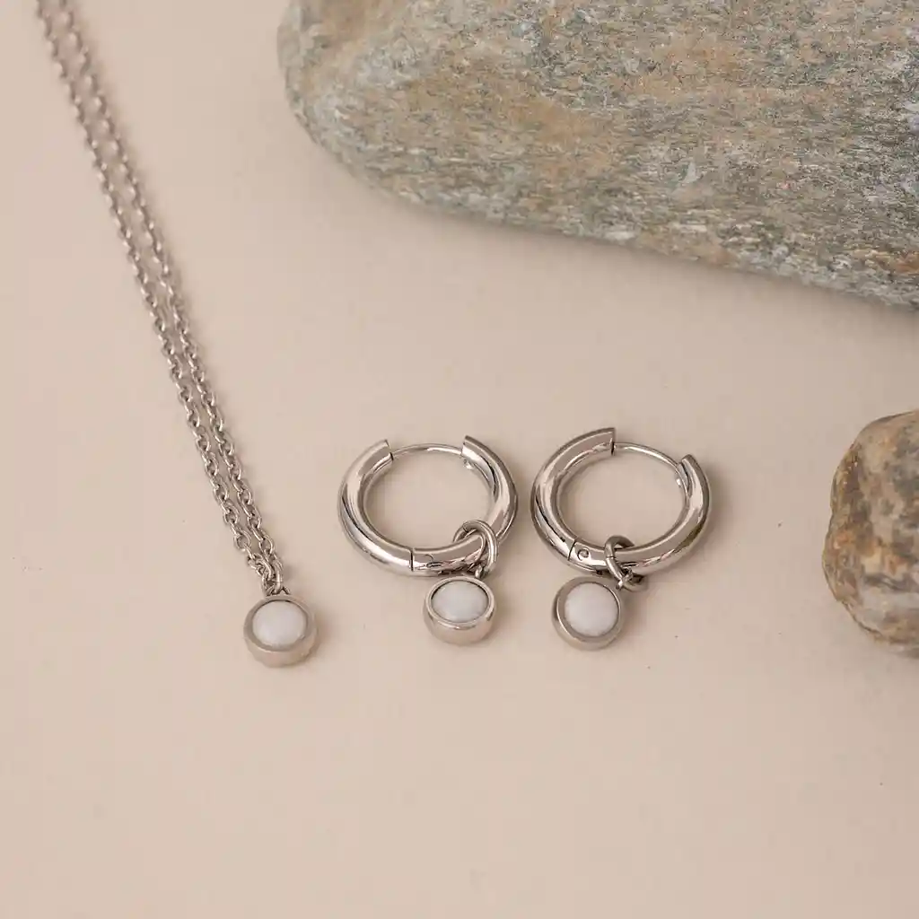 El Conjunto Tama es la suma perfecta de dos piezas que se complementan para lograr un look equilibrado, limpio y lleno de intención. Transmite pureza y equilibrio, mientras la cadena fina y los aros pequeños crean una silueta delicada y moderna. Llevar el set completo potencia su efecto: el collar aporta delicadeza al escote, mientras las candongas enmarcan el rostro con suavidad. Juntas, elevan cualquier outfit con una estética minimalista que respira serenidad y estilo. Fabricado en acero quirúrgico, hipoalergénicas y resistentes al agua, que acompañan con elegancia tanto lo cotidiano como lo especial. Dimensiones Collar Largo: 38 cm + 5 cm de extensión Diámetro Dije: 7.1 mm aprox. Candongas Diámetro: 14 mm Grosor: 3 mm Diámetro dije: 7.1 mm aprox.
