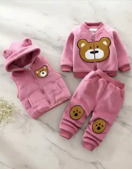 Conjunto Térmico Niña Oso 3 Piezas Rosa 2-3 Años Premium