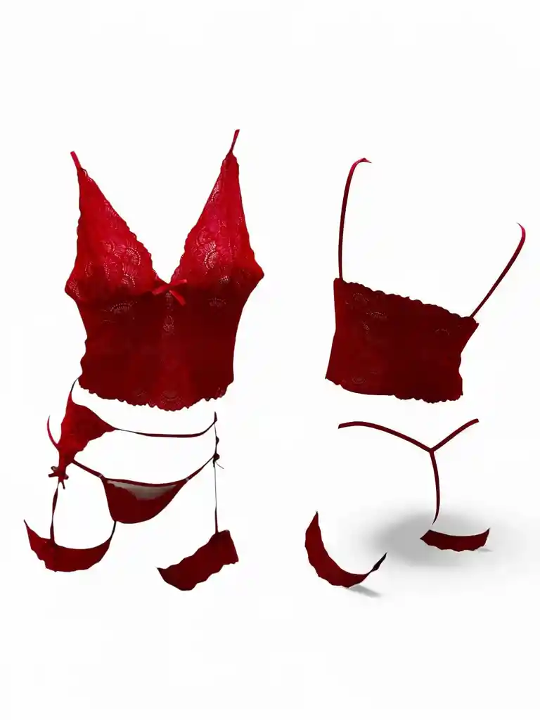 Conjunto de 4 pieza , top , tanga y ligueros