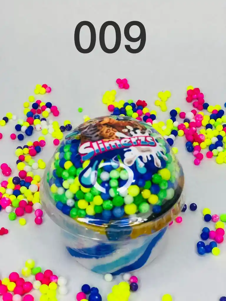 Slime flufly super suave con cupula amarillo, verde, azul y blanco