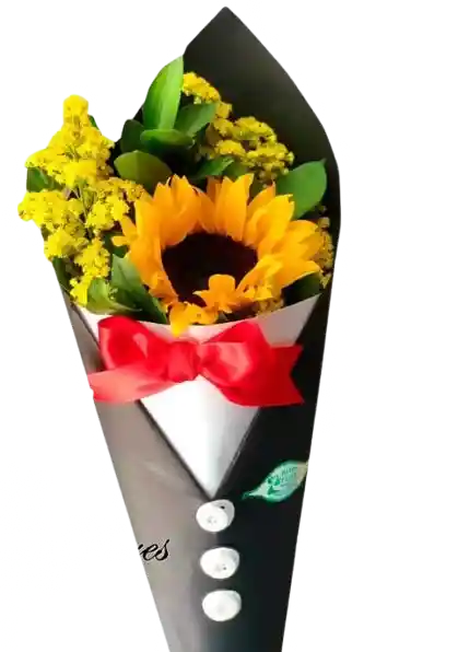 Un detalle sencillo pero lleno de luz. Este hermoso girasol en presentación de cono es perfecto para regalar sonrisas y buena energía en cualquier ocasión. Incluye tarjeta personalizada con el mensaje que dejes en el chat de la orden.
