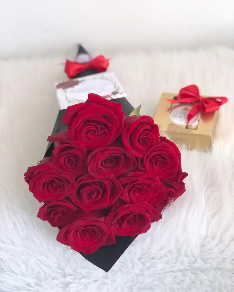 Bouquet Rosas pequeño + Caja ferrero x4