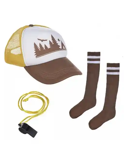 Vive tus mejores sueños de campamento de verano con este conjunto clásico amarillo y marrón. Incluye una camiseta "Staff" con tema de la naturaleza, una gorra de camionero a juego, calcetines deportivos hasta la rodilla y un silbato de plástico. Detalles del producto del kit de accesorios para disfraz de consejero de campamento para adultos: juego de 4 piezas Incluye Camiseta ringlera amarilla y marrón Cuello redondo Mangas cortas 100% poliéster Diseño en ambos lados Gorra trucker amarilla y marrón Cierre a presión ajustable Panel trasero de malla Silbato negro Cordón amarillo adjunto El plastico Calcetines altos deportivos marrones y blancos Acanalado Puños con doble raya Acrílico, poliéster, caucho y spandex Zapatos y pantalones cortos no incluidos. Talla única hasta pecho de 44 pulgadas 40.5in cintura Instrucciones de cuidado: Retire los accesorios antes de lavar Lavar a mano en agua fría con colores similares Línea seca No usar lejía ni planchar.