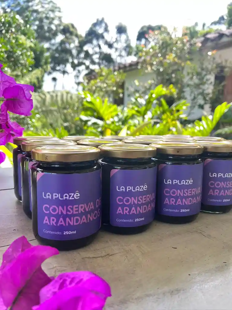 Conserva natural de arándanos, 100% natural, sin conservantes ni aditivos, sin azúcar añadido. Presentación 250ml