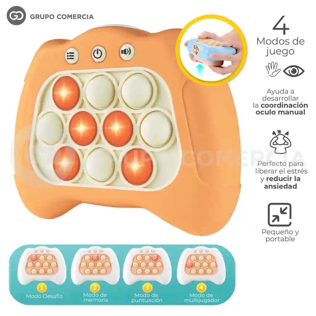 Pop Quick It Game Pro Selección de modo de juego: hay cuatro modos diferentes, el primer modo es el modo de ruptura, que consta de 30 niveles, cada nivel con 5 subniveles. El segundo modo es el modo de memoria, que consta de 9 niveles, cada nivel con 5 subniveles. El tercer modo es el modo de puntuación, donde cuantas más luces se apagan en un minuto, mayor será la puntuación. El último es el modo multijugador, donde cada jugador completa un desafío PK antes de pasarlo al siguiente jugador. Juguete de mano para reventar: este pequeño dispositivo interactivo es la elección perfecta para aliviar el estrés y mejorar la estimulación sensorial de los niños. Su diseño lo convierte en un gran juguete STEM para mejorar la atención y el compromiso.