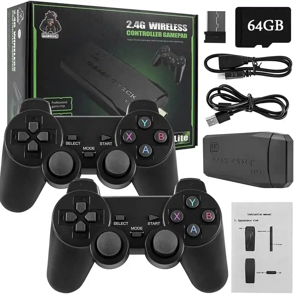 Consola Retro Este dispositivo de juego retro incorpora más de 10000 juegos retro, son 9 consolas preinstaladas (MAME/FC/GB/GBA/GBC/MD/SFC/PS1/ATARI2006/ATARI7800), tiene una tarjeta MicroSD de 64 GB trae los juegos guardados adicionalmente puede descargar nuevos juegos e instalarlos, solo conéctese a la TV y juegue. ¡Los videojuegos clásicos traen tus recuerdos a la infancia y disfruta del tiempo de entretenimiento con tu familia! Equipado con 2 controles inalámbricos, conectado con el receptor bluetooth de la consola de juegos retro, admite 2 personas al mismo tiempo. Algunos juegos de FC no admiten juegos de dos jugadores. Consejo: cada control inalámbrico requiere 2 pilas AAA, (no incluidas en el paquete) El gameStick es plug and play y está lleno de desafíos y bastantes horas de diversión, solo necesita conectarle a la consola el cable de alimentación, el puerto USB y luego enchufarlo al televisor por HDMI. Esta mini consola de juegos retro se puede conectar a distintos dispositivos de imagen con HDMI, como por ejemplo TV, monitores, proyectores de alta definición 4K. Se ajusta a pantallas de calidad 4k, lo que brindará una excelente experiencia de juego, Los juegos conservan la calidad de juegos retro de pixeles mas grandes. -El juego retro stick no solo brinda gran diversión a los niños, sino que también disfruta del juego nostálgico con tus seres queridos desde la comodidad de tu sofá y trae recuerdos de la infancia de los años 1990 y 2000. Regalo ideal para amantes de los juegos para cumpleaños o cualquier ocasión. Contenidos del paquete: 1 Consola Stick Retro. 1 Micro 64GB juegos incorporados 2 joysticks inalámbricos. 1 cable de carga. 1 receptor USB 1 cable de extensión de alta definición 1 caja de embalaje. 1 manual de instrucciones Consola con 9 emuladores instalados ARCADE, NES, GAMEBOY, GAMEBOY COLOR, GAMEBOY ADVANCE, SEGA GENESIS, SUPER NINTENDO, PLAYSTATION 1, ATARI. MicroSD 64GB mas de 10.000 juegos instalados Lista de juegos de la Consola PS1 la mayoria en español y mas reconocidos. * Alundra * Bugs Bunny y taz la espiral del tiempo * Bugs Bunny perdido en el tiempo * Castlevania Symphony of the Night * Chrono Cross * Colin McRae Rally 2.0 * Crash Bandicoot * Crash Bandicoot 2 Cortex Strikes Back * Crash Bandicoot 3 Warped * Crash Bash * CTR Crash Team Racing * Dino Crisis * Dino Crisis 2 * Hercules * Dragon Ball Final Bout * Dragon Ball Z Ultimate Battle 22 * Driver 2 Disco 1 * Driver 2 Disco 2 * FIFA 98 * FIFA 2002 * Final Fantasy VII Disco 1 * Final Fantasy VII Disco 2 * Final Fantasy VII Disco 3 * Gran Turismo * Gran Turismo 2 - Arcade Mode * Gran Turismo 2 - GT Mode [CD2] * Harry Potter y la Piedra Filosofal * International Superstar Soccer Pro 98 * Liga BetPlay y Liga Pro 2023 * Looney Tunes Sheep Raider * Marvel Super Heroes vs. Street Fighter * Marvel vs. Capcom Clash of Super Heroes * Medal Of Honor Underground * Metal Slug X * Mortal Kombat 4 * Mortal Kombat Trilogy * Moto Racer 2 * Quake II * Rayman 2 The Great Escape * Resident Evil 2 [CD1] [Leon Disc] * Resident Evil 2 [CD2] [Claire Disc] * Resident Evil 3 Nemesis * Silent Hill * Spider-Man * Tarzan * Tekken 3 * Tom Raider 4 The Last Revelation * Tom Raider II Starring Lara Croft * Tony Hawk's Pro Skater 2 * Winning Eleven 2002 * Yu-Gi-Oh Forbidden