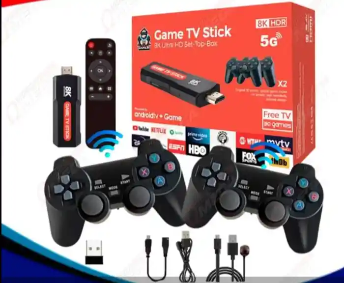 🎮 Game TV Stick 8K Ultra HD + 2 Mandos Inalámbricos Convierte tu televisor en un centro de entretenimiento completo con este Game TV Stick. Ideal para disfrutar tus series, películas y videojuegos favoritos en una calidad 8K HDR Ultra HD. 🔹 Incluye: 2 mandos inalámbricos con diseño ergonómico para una experiencia de juego cómoda. Control remoto con conexión WiFi para un manejo intuitivo. Compatibilidad con las plataformas más populares: YouTube, Netflix, Prime Video, HBO, ESPN, y más. 🔹 Características principales: Procesador rápido y potente con soporte para 5G. Acceso a más de 30 juegos clásicos preinstalados. Configuración sencilla y diseño compacto. Lleva el entretenimiento a otro nivel y transforma tu sala en una verdadera estación multimedia. ¡Perfecto para toda la familia!