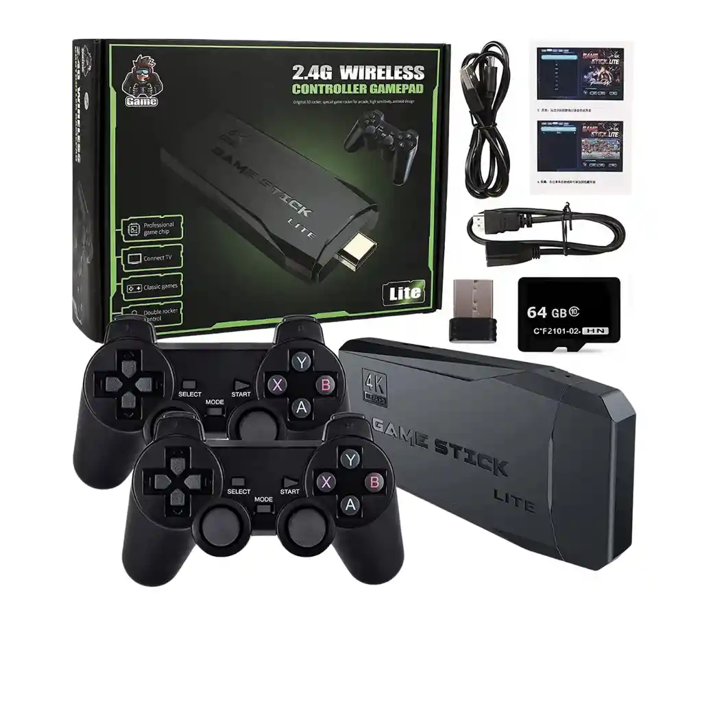 El regalo perfecto para amantes de los videojuegos. Con más de 10,000 juegos de video, gracias a su inteligencia trae 9 emuladores preinstalados. ¡REVIVE LA EMOCIÓN DE TU NIÑEZ CON MÁS DE 10.000 JUEGOS CLÁSICOS! TENDRÁS 9 CONSOLAS DIFERENTES EN UNO. Algunos de los juegos clásicos que encontrarás Super Mário Bros, Donkey Kong, Dragon Ball Z/GT, Street Fighter, Sonic, Resident Evil, Mortal Kombat, Pacman, Y MUCHO MAS! ✔ Más de 10.000 Juegos en un solo dispositivo del tamaño de una memoria USB. ✔ Edición con 2 controles para que puedas jugar acompañado. ✔ Conexión rápida mediante HDMI, enchufar y jugar. ✔ Puedes jugar en cualquier TV o Monitor con conexión HDMI. 🎮 BENEFICIOS DE LA CONSOLA🎮 ✔Más de 10.000 juegos de video. ✔ 9 emuladores (Mame, PS1, SFC, FC, GB, GBC, GBA, Genesis MD, Atari). ✔2 Controles incluidos. ✔ Configuración sencilla. ✔ Regalo ideal para los amantes de los juegos ✔Diversión en familia. Caracteristicas: Permite Grabar el progreso del juego 🕹Emuladores Name/FC/GB/GBA/GBC/MD/SFC/PS1/Atari 2600/Atari 7800 🎮 Incluye dos Controles Inalámbricos (Funciona con Pilas AAA) 📺 Conexión HDMI 🖥 Sistema Operativo Linux/ DDR3 256MB Memoria 64gb Conexión 5V