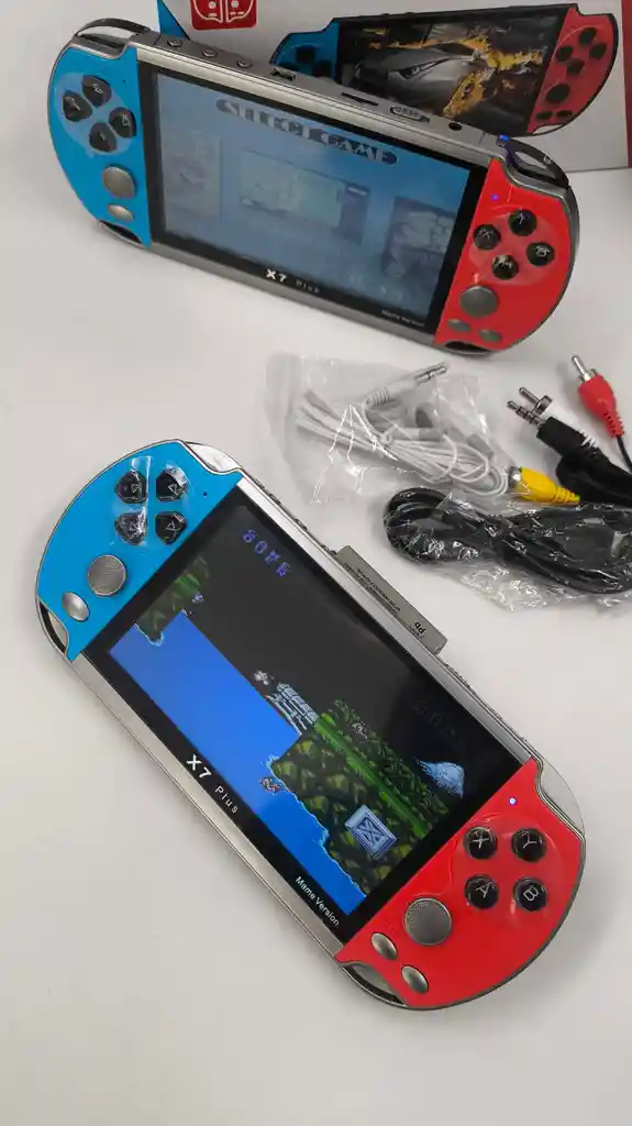 La Consola X7 Plus cuenta con las siguientes características: 🕹️1000 juegos retro incorporados. 👾Juegos de consolas como Super Nintendo, Game Boy, Game Boy color, Game Boy Advance, Nintendo NES. 📸Cámara. 🔋Batería recargable con una duración de 3 a 4 horas en uso continúo. consola X7 Plus cuenta con las siguientes características: