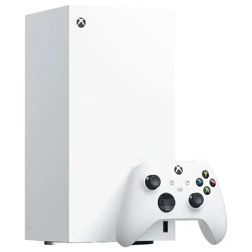 Xbox Series X: Edición digital de 1 TB (blanco) Disfruta de la Xbox más rápida y potente de la historia con la Xbox Series X, ahora totalmente digital con un SSD de 1 TB Especificaciones: PROCESADOR: -CPU Zen 2 personaliza de 8 núcleos a 3,8 GHz (3,66 GHz con SMT) -GPU de 12 TERAFLOPS, GPU personalizada RDNA 2 de 52 CU a 1,825 GHz MEMORIA Y ALMACENAMIENTO: -Memoria. GDDR6 de 16 GB con bus de 320 bits de ancho -Ancho de banda de la memoria. 10 GB a 560 GB/s, 6 GB a 336 GB/s. -Almacenamiento interno. SSD NVME personalizado de 1TB -Rendimiento de E/S. 2,4 GB/s (sin formato), 4,8 GB/s (comprimido, con bloque de descompresión de hardware personalizado) -Almacenamiento expandible. La compatibilidad con la tarjeta de expansión de almacenamiento de 1 TB para Xbox Series X-S coincide exactamente con el almacenamiento interno (se vende por separado). -Compatibilidad con disco duro externo USB 3.1 (se vende por separado). FUNCIONALIDADES DE VIDEO -Resolución de juego. Auténtico 4K -Alto rango dinámico. HDR de hasta 8K -Unidad óptica. 4K UHD Blu-ray -Objetivo de rendimiento. Hasta 120 FPS -Características HDMI. Modo automático de baja latencia. -Frecuencia de actualización variable HDMI. AMD FreeSync. FUNCIONALIDADES DE SONIDO -Dolby Digital 5.1 -DTS 5.1 Dolby TrueHD con Atmos -L-PCM de hasta 7,1 PUERTOS Y CONECTIVIDAD -HDMI. 1 puerto HDMI 2.1 -USB. 3 puertos USB 3.1 Gen 1 -Red inalámbrica. Banda dual de 802.11ac -Ethernet. 802.3 10/100/1000 -Accesorios de radio. Radio inalámbrica Xbox de doble banda dedicada. DISEÑO Dimensiones 15,1 cm x 15,1 cm x 30,1 cm Peso 4445 gramos Utilízala solo con juegos digitales; la consola no reproduce discos físicos. Los juegos se venden por separado. 4K a 120 FPS: requiere contenido y pantalla compatibles