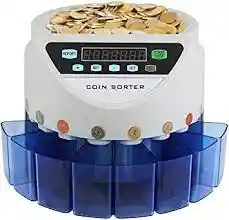 Descripción Velocidad de conteo máximo 170 monedas / min. Capacidad Max. 500 monedas. Display de conteo de 7 dígitos. Informa por medio de un reporte en el display la cantidad de monedas por denominación y por cantidad total en pesos. Se puede programar para realizar paquetes por denominación de 1-999 monedas. Clasifica monedas de la siguiente denominación: de $50, $100, $200, $500, $ 1000 Fácil operación. Diseño compacto y novedoso. Voltaje de 110 / 60 Hz. Potencia de 45W. Peso: 3.9 Kg. Los Colores pueden variar