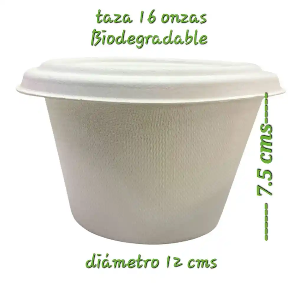 CONTENEDOR BIODEGRADABLE, COMPOSTABLE 16 ONZA CON TAPA