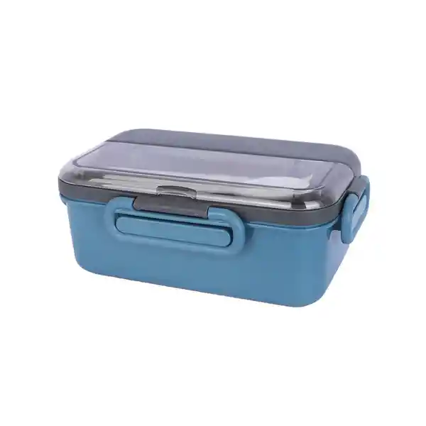 Miniso Trae Para ti Este Lindo y Exclusivo Contenedor de Comida 1500 mL de Doble Capa Con 4 Hebillas Azul