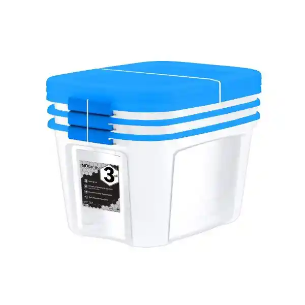 Los contenedores de plástico de NO! Break son de base transparente, tapa transparente y cierres plateados suaves. Es ideal para organizar los objetos de tu oficina, garaje, herramientas, ropa y accesorios. Sus cierres de hebilla facilitan el almacenamiento en distintos espacios de la casa y el correcto sellado para proteger tus elementos de salpicaduras y polvo. Información del producto: Cuenta con tecnología NO! Break | Capacidad de 41 L / 11 gal. Sus dimensiones son 40 cm de largo x 53 cm de ancho x 36 cm de alto / 15.75 × 20.87 × 14.17 | Fabricado en 100% Polipropileno | Peso neto: 3.3 kg / 7.3 lb.