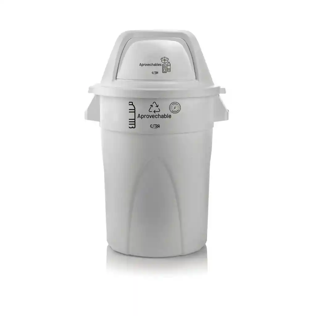Fabricado con material reciclado. Ideal para residuos reciclables. Cumple normativa colombiana vigente. Capacidad de 121 litros ideal para residuos. Tapa domo con apertura tipo push. Sistema vaivén que reduce olores. Compatible con base móvil. Uso en interiores y exteriores. Diseño resistente y duradero. Estructura estable y funcional. Fácil limpieza y mantenimiento. Perfecto para alto tráfico. Diseño ecológico y sostenible. La imagen ha sido ambientada; no incluye accesorios adicionales y el color puede variar según la iluminación.