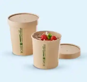Ideal para ensaladas, pastas y bowls calientes o fríos. Resistente, funcional y con tapa segura que evita derrames. Fabricado en cartón de grado alimenticio, práctico para domicilios y consumo para llevar.