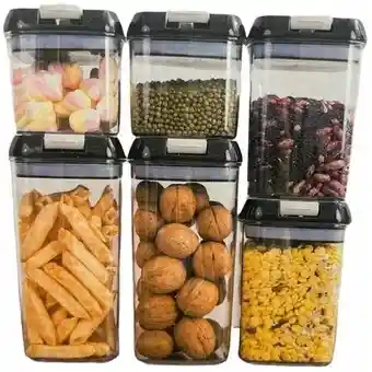 Contenedores de Alimentos Con Tapas, 6 Piezas Ayude a organizar su cocina y despensa: imagínese que cada vez que camina hacia su cocina o despensa, descubra que todo está perfectamente organizado. Ya no se ensucia, puede obtener todo lo que desea muy rápidamente. Con el diseño apilable y que ahorra espacio, estos contenedores harán un uso más eficiente de cada centímetro de los gabinetes de la despensa de su cocina. Combinaciones de 4 tamaños que se adaptan a sus necesidades: nuestro juego de contenedores de almacenamiento de cocina viene en 3 tamaños diferentes. Incluye 2 contenedores altos (2 X 1,2 litros), 2 contenedores medianos (2 x 0.8 l) y 2 contenedores pequeños (2 x 0.5 litros).Perfecto para almacenar espaguetis, suministros para hornear, cereales, harina, azúcar, avena, pasta, arroz, café, té, bocadillos, nueces y otros productos secos. Los recipientes herméticos mantienen los alimentos frescos: las tapas de cierre lateral con junta de silicona hacen que estos recipientes de almacenamiento sean herméticos y la parte superior se abre fácilmente. El sistema de almacenamiento hermético siempre mantendrá su comida seca y fresca. Todos tienen las mismas tapas para que sea fácil de lavar, secar y reutilizar con facilidad. Material de grado alimenticio y libre de BPA: los contenedores de almacenamiento de despensa están hechos de plástico duradero, sin BPA, que tiene una vida útil más larga. Los contenedores transparentes hacen que sea conveniente ver lo que hay dentro, puede obtener fácilmente lo que desea sin abrir todos los contenedores. * CONTENIDO DEL PAQUETE: 1 x Contenedores de Alimentos Con Tapas 6 piezas.