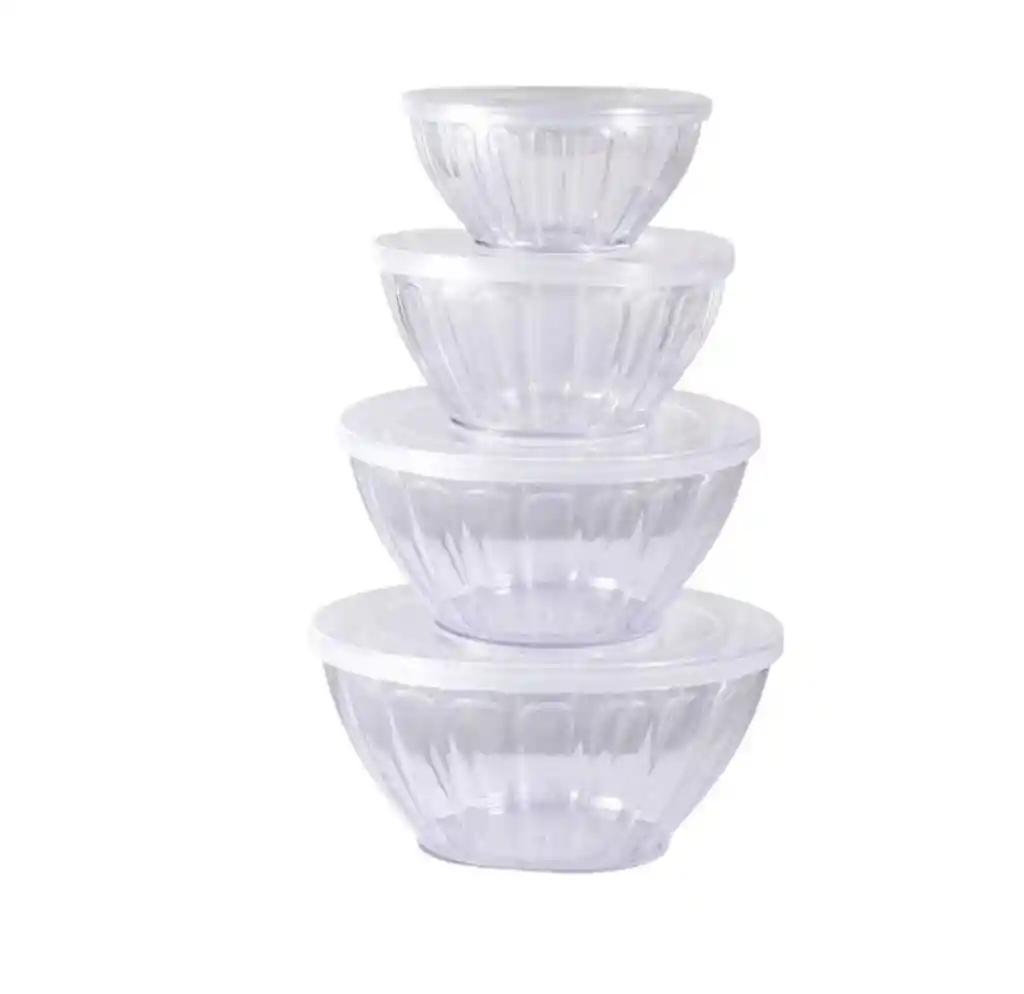 Almacenamiento de alimentos de Smart Kitchen. Este juego incluye cuatro recipientes de diferentes tamaños para satisfacer todas tus necesidades de almacenamiento, ya sea para el refrigerador, la cocina o para viajar. Hechos de acrilico transparente de alta calidad que te permite ver fácilmente el contenido, vienen con tapas herméticas que evitan fugas y conservan el sabor. -4 recipientes de diferentes tamaños -Tapas herméticas para evitar fugas -acrilico seguro y fácil de limpiar -Ideal para guardar alimentos en casa o de viaje