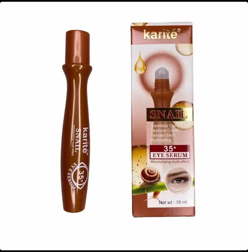 CONTORNO DE OJOS EN ROLL ON BABA DE CARACOL DE KARITE, NUTRE , SUAVIZA Y REFRESCA ESTA PARTE DE TU PIEL, SU APLICADOR ES UN BALIN EL CUAL MANTIENE FRIO