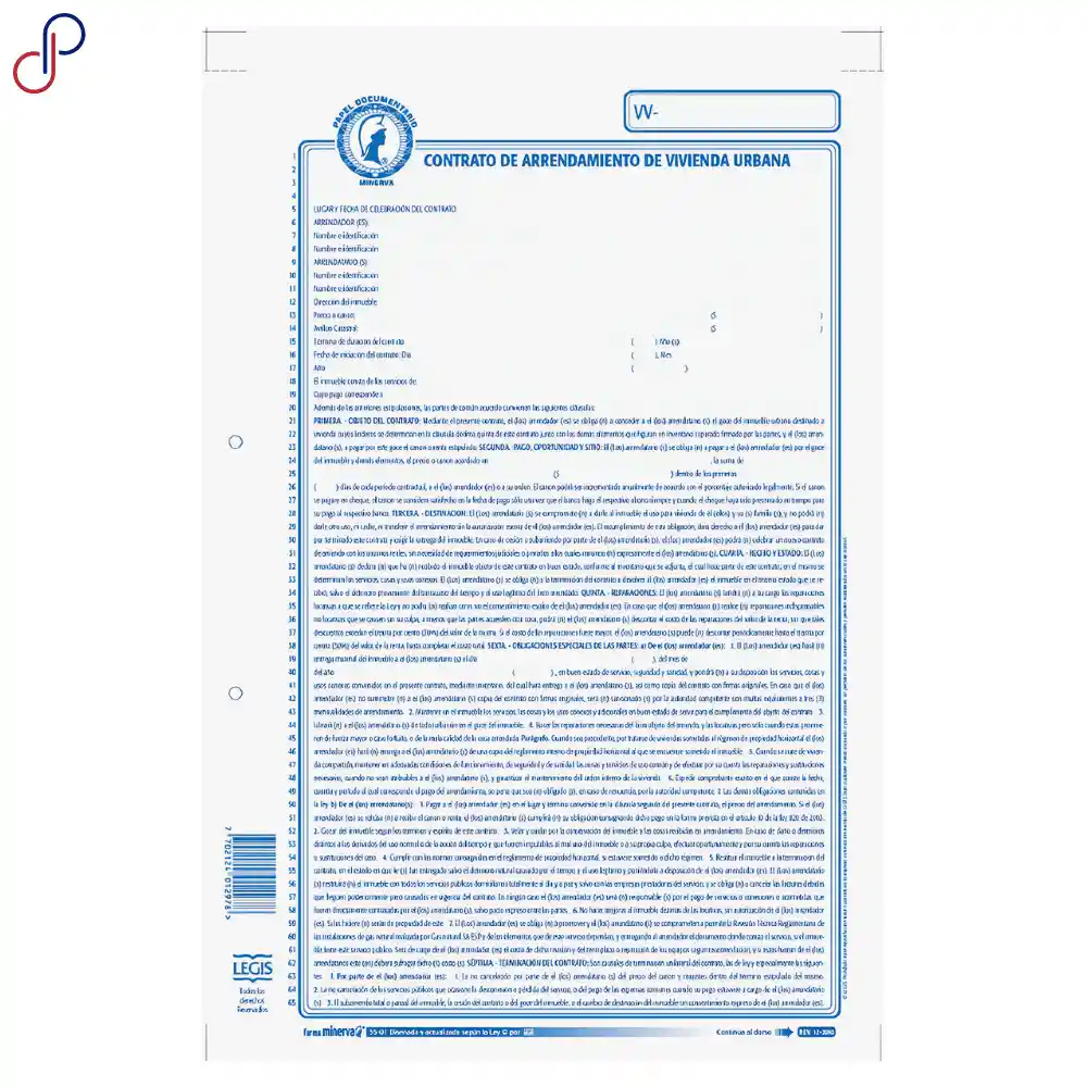 CONTRATO ARRENDAMIENTO VIVIENDA URBANA FORMATO IMPRESO PARA USO LEGAL Y NOTARIAL