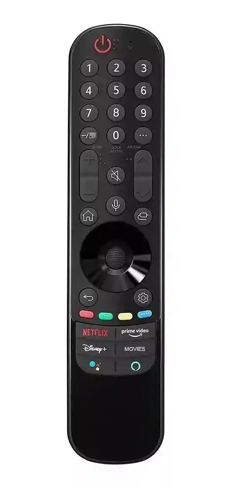 ¡El reemplazo perfecto! Si perdiste o dañaste tu control LG Magic ¡no te preocupes! Tenemos la solución perfecta, económica y funcional para reemplazarlo. El Control Remoto compatible con LG Magic AN-MR21GA, es la solución perfecta para controlar tu televisor LG de manera eficiente y cómoda. Una solución económica y rápida de controlar tu TV, que no incluye las funciones de voz ni puntero, pero podrás administrar tu entretenimiento y tu hogar inteligente, con botones dedicados Netflix, Amazon prime, Disney+ y más. CARACTERÍSTICAS - Diseño Ergonómico y Elegante: El diseño del Control Remoto compatible con LG Magic AN-MR12GA es una combinación de ergonomía y estilo. Se adapta cómodamente a tu mano y presenta un aspecto moderno y elegante que complementará la estética de tu sala. - Botones de Acceso Rápido: Este control remoto incluye botones dedicados para acceder rápidamente a las funciones más utilizadas, como Netflix, Amazon Prime Vide, Disney+, Google y Alexa, lo que te permite disfrutar de tu contenido favorito con un solo toque. - Opción económica: Una opción económica, sin las funciones de comando de voz ni puntero, pero con todas las demás características de un control LG que garantizan un funcionamiento óptimo. ESPECIFICACIONES - Producto nuevo de alta calidad (genérico) - Baterías: AAA x2 (no incluidas) - Conectividad: Infrarrojo - Distancia de Operación: Hasta 10 metros - Material: Plástico de alta calidad - Color: Negro COMPATIBILIDAD Este producto es compatible con cualquier TV LG. INCLUYE 1x Control remoto compatible con LG Magic Remote según descripción