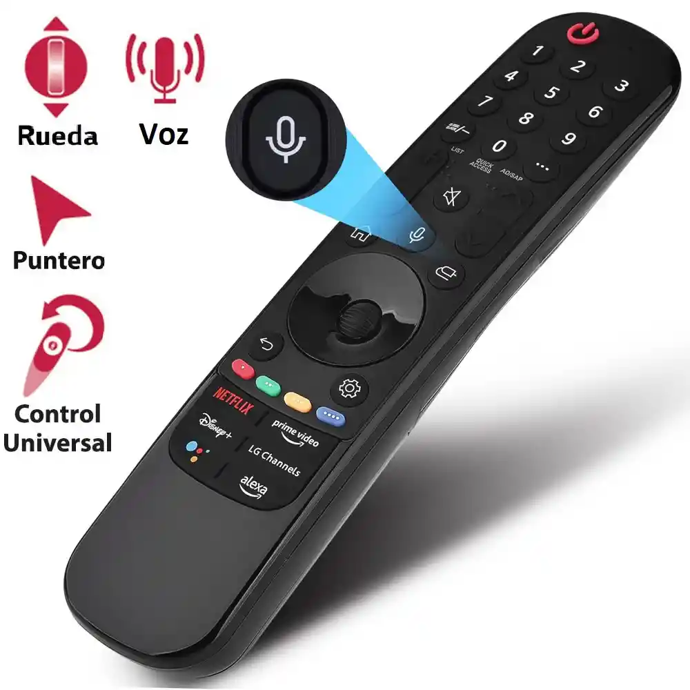 ¡Magia en tus manos! Si eres un orgulloso propietario de un Smart TV LG, entonces sabes lo importante que es tener un control remoto confiable y funcional para sacar el máximo provecho de tu televisor. ¡No busques más! El Control Remoto compatible con LG Magic AN-MR22GA, es la solución perfecta para controlar tu televisor LG de manera eficiente y cómoda. Con todas sus funciones de comandos de voz, control de scroll (puntero mouse) y rueda de click para administrar tu entretenimiento y tu hogar inteligxente, con botones dedicados Netflix, Amazon prime, Disney+, Google y Alexa. CARACTERÍSTICAS - Diseño Ergonómico y Elegante: El diseño del Control Remoto compatible con LG Magic ANM-R22GA es una combinación de ergonomía y estilo. Se adapta cómodamente a tu mano y presenta un aspecto moderno y elegante que complementará la estética de tu sala. - Control por Movimiento: Con la función de control por movimiento, puedes navegar por la pantalla de tu televisor LG de una manera intuitiva. Simplemente mueve el control en la dirección que desees y observa cómo el puntero se mueve en la pantalla. Es como la magia en tus manos. - Función de Voz Integrada: ¿Cansado de escribir largas búsquedas o comandos en tu televisor? Con el Control Remoto compatible con LG Magic AN-MR22GA, puedes simplemente hablarle a tu televisor para buscar contenido, ajustar configuraciones y mucho más. Es rápido y conveniente. - Botones de Acceso Rápido: Este control remoto incluye botones dedicados para acceder rápidamente a las funciones más utilizadas, como Netflix, Amazon Prime Vide, Disney+, Google y Alexa, lo que te permite disfrutar de tu contenido favorito con un solo toque. - Botones con funciones dobles como Quick Access, Magic Link. ESPECIFICACIONES - Producto nuevo genérico de alta calidad - Baterías: AAA x2 (no incluidas) - Medida del control: 4.3 x 19 x 3.2 cm - Conectividad: Bluetooth - Distancia de Operación: Hasta 10 metros - Material: Plástico de alta calidad - Color: Negro COMPATIBILIDAD Este producto es compatible con modelos de televisores LG con año de fabricación 2018, 2019, 2020, 2021 y 2022. NOTA: El año de fabricación de tu TV lo puedes validar en la etiqueta impresa al respaldo del TV. Modelos OLED: series A2-B2- C2-G2-Z2 Modelos NanoCell: series NANO75-NANO80-NANO99-NANO97-NANO91-NANO90-NANO85-NANO81 Modelos 4K UHD: series UQ90- UQ75-UQ80-UN85 Modelos QNED: QNED80-QNED85-QNED90-QNED99 INCLUYE 1x Control remoto compatible con LG Magic Remote según descripción OPERACIÓN Para usar la función de puntero y comando por voz debe seguir los siguientes pasos: 4. Encender el TV y colocar las baterías al control remoto. 5. Desvincular el control remoto anterior. Para esto, usando el nuevo control remoto, apunta hacia el TV y presionar al mismo tiempo las teclas Home (casita) y Back (flecha atrás) por cinco segundos hasta que el botón de encendido parpadee. 6. Vincular el nuevo control remoto. Apunta hacia el TV y haz clic presionando la rueda hasta que aparezca el mensaje de vinculación con tu TV y ¡estará listo para usar! NOTA: En caso de que falle la vinculación, apagar y encender la TV e intentar nuevamente.