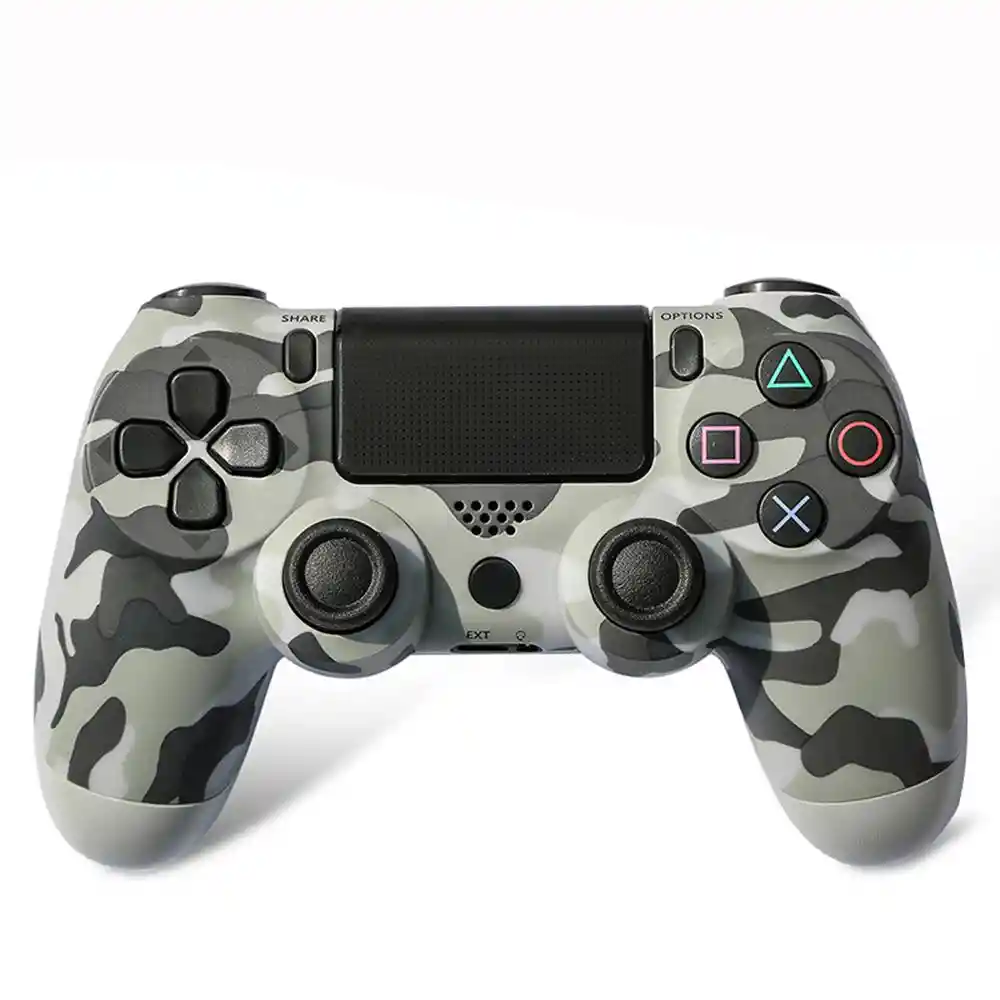 Control Con Diseño camuflado, replica Este mando combina funciones revolucionarias mientras conserva precisión, comodidad y exactitud en cada movimiento. Gracias a su ergonomía especialmente pensada para la posición de tu mano, puedes pasar horas jugando con total confort. Transmite de forma inmediata Comparte tus triunfos y logros con tus amistades en las redes sociales más populares con solo tocar el botón SHARE. Nuevas ideas Guía, haz gestos o dibuja con la almohadilla táctil. Su ubicación en la parte frontal del controlador dará más libertad a tu forma de jugar. Juego personalizado Cuatro luces LED de color ofrecen una forma más sencilla de identificar a los jugadores y visualizar información de juego útil, como cuando un personaje sufre daños serios. Escucha cada detalle Disfruta del sonido de alta fidelidad con el controlador y chatea con el parlante mono incorporado y la toma para audífonos. Mayor comodidad y realismo Te permite jugar sin necesidad de que haya cables de por medio. Está pensado no solamente para controlar mejor tus videojuegos, sino también para aumentar su realismo y experiencia.
