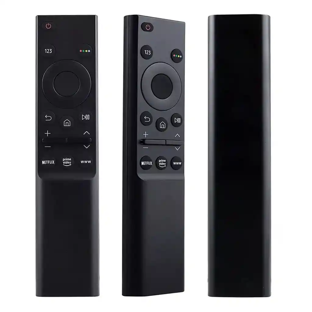 ¿Perdiste o dañaste tu control remoto anterior de Samsung? ¡Cámbialo ahora! No te preocupes, el Control Remoto compatible con Samsung One Remote plano con tecla Netflix, Prime Video y www está aquí para restablecer tu experiencia de entretenimiento. Con características avanzadas y compatibilidad amplia, este control te brinda un control completo de tus dispositivos. NOTA: Si tu control remoto original es igual al de las imágenes o aparece en el listado de compatibilidad, puedes comprar con la confianza de que te funcionará perfectamente. Si no es igual, por favor déjanos saber el modelo y marca del TV o control remoto, o una foto del control remoto para confirmar la compatibilidad. CARACTERÍSTICAS - Funcionalidad Completa: Todas las funciones esenciales están a tu alcance, desde cambiar de canal y ajustar el volumen hasta acceder a menús y modos de visualización, brindándote un control completo de tu televisor. - Función de acceso directo: Netflix, Prime video, www (compatible solo con los modelos que tienen esa función) - Diseño Moderno: El diseño ergonómico y moderno no solo es estéticamente agradable, sino que también se adapta cómodamente a tu mano, haciendo que el manejo sea cómodo y fácil. - Material Duradero: Fabricado con materiales duraderos, este control está diseñado para resistir el uso diario, garantizando una experiencia duradera y confiable. ESPECIFICACIONES - Modelo: BN59-01358B BN59-01358A - Conectividad: Infrarrojo - Baterías: AA x2 INCLUYE 1 Control compatible con Samsung One Remote plano CONTROLES COMPATIBLES BN59-01358B BN59-01358A TV COMPATIBLES Compatible con todos los modelos de Smart TV de Samsung: 6 series, 7 series, 8 series, 9 series UE43AU7100U, UE43AU7500U, UE50AU7100U, QN85Q70AAGXZS, QN50Q60AAG Y muchos más.