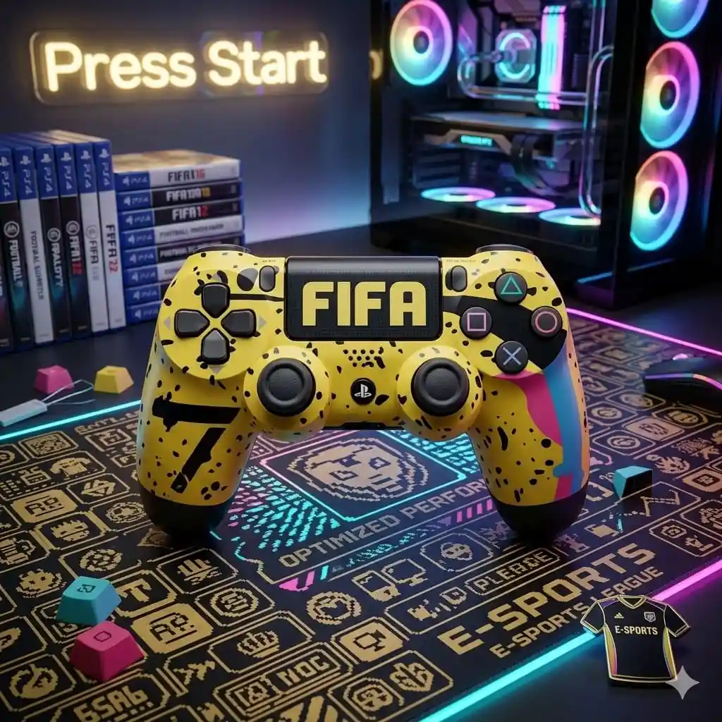 Lleva tu nivel de juego al siguiente nivel con este espectacular control de PS4 personalizado con diseño exclusivo estilo FIFA E-Sports ✓Características principales: Diseño único tipo gamer competitivo (inspirado en E-Sports) Acabado llamativo en colores vibrantes y estilo profesional Compatible con PlayStation 4 (PS4) Ideal para jugadores de FIFA, fútbol y gaming competitivo Ergonomía perfecta para largas sesiones de juego ✓Perfecto si quieres destacar mientras juegas o incluso como regalo para gamers apasionados. ✓No es solo un control, es una experiencia gamer.
