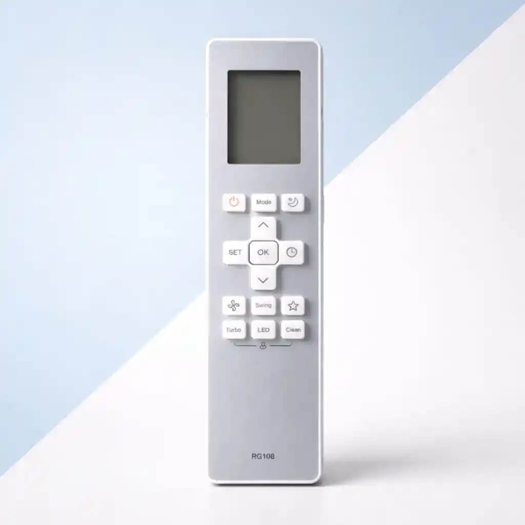 Control remoto compatible con aire acondicionado Olimpo, modelo RG108. Ideal como reemplazo cuando el control original se daña, se pierde o presenta fallas. Diseño ergonómico, botones suaves y pantalla amplia para una visualización clara de funciones. Permite manejar cómodamente las configuraciones de climatización. Funciones principales: Encendido / Apagado Modo (Frío, Ventilación, Auto según equipo) Ajuste de temperatura Control de ventilador Función Swing Turbo LED Clean Características: Compatible con equipos Olimpo Respuesta rápida y precisa Diseño liviano y cómodo Fácil uso Ideal para hogares, oficinas, consultorios y espacios comerciales.